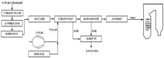 圖1 大型火電耦合生物質(zhì)氣化發(fā)電流程圖