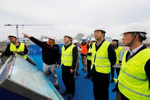 2月25日下午,防城港市委書記李延強、市長班忠柏上任后首次到訪防城港核電基地,調(diào)研項目生產(chǎn)和工程建設(shè)推進情況,實地察看建設(shè)中的防城港核電二期工程“華龍一號”示范項目。 圖片來源:中廣核集團官網(wǎng)