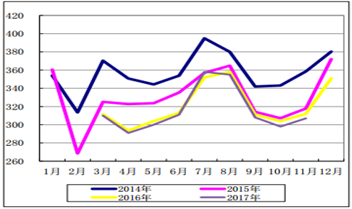 2017年11 月份, 全國全部機組利用小時 307 小時, 同比下降 5 小時。1-11 月份,全國發(fā)電設(shè)備累計平均利用小時 3416 小時,比上年同期降低 18 小時。