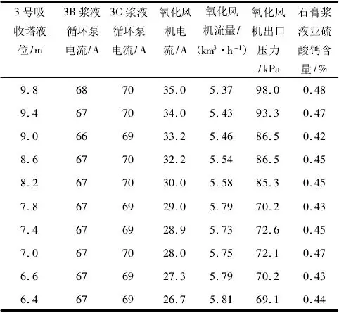 表1 3號吸收塔降液位運(yùn)行參數(shù)變化表