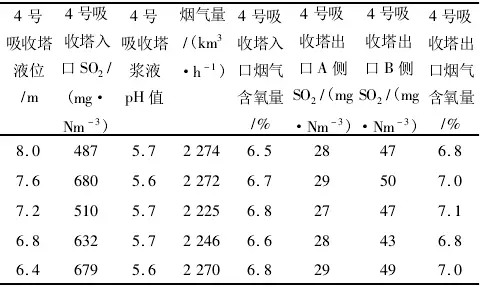 表4 4號吸收塔降液位CEMS運(yùn)行參數(shù)變化表