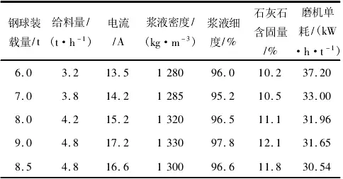 2.2 濕式球磨機(jī)單耗優(yōu)化調(diào)整