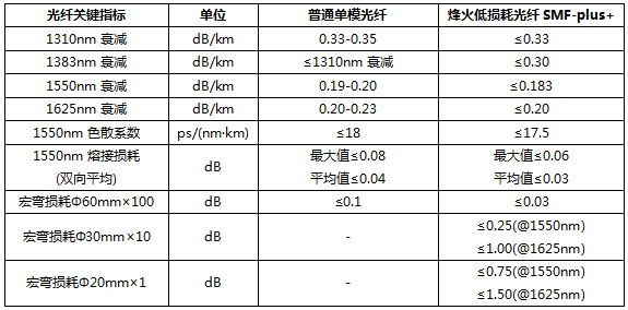 表1 普通單模光纖與低損耗光纖參數(shù)對(duì)比