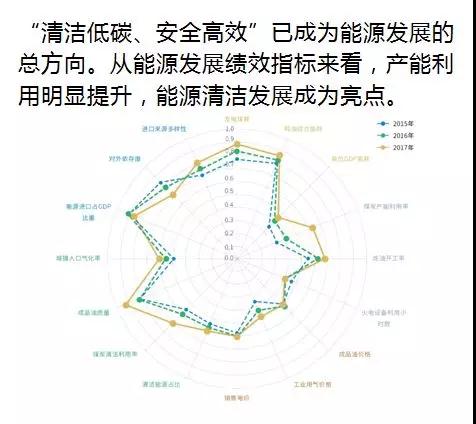 ?2017年,“清潔低碳、安全高效”已成為能源發(fā)展的總方向。從能源發(fā)展績效指標(biāo)來看,產(chǎn)能利用明顯提升,能源清潔發(fā)展成為亮點。
