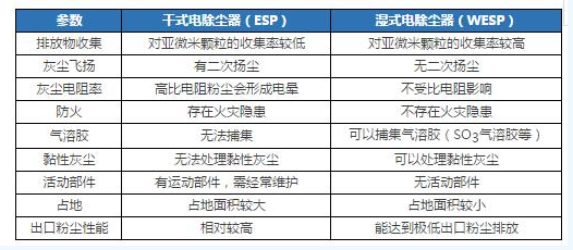 WESP獨(dú)特的清灰方式以及工作環(huán)境,使其較干式除塵器具有很多的特點(diǎn):