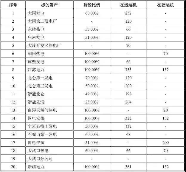 國電電力擬用于出資的標(biāo)的資產(chǎn)包括: