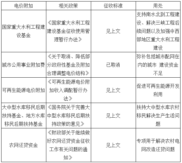 該文件核心是實(shí)現(xiàn)工商用電同價(jià),并明確要求銷(xiāo)售電價(jià)分類(lèi)結(jié)構(gòu)原則上應(yīng)于5年左右調(diào)整到位。從政策的實(shí)際執(zhí)行情況看,除了上海、河北、海南和廣東的深圳,全國(guó)大部分省份仍未能實(shí)際落實(shí)政策??梢灶A(yù)見(jiàn),降低一般工商業(yè)用電電價(jià)將主要由電網(wǎng)企業(yè)來(lái)承擔(dān),同時(shí),國(guó)家電網(wǎng)公司董事長(zhǎng)舒印彪在3月5日的總工會(huì)界別小組討論時(shí)也表示國(guó)家電網(wǎng)將承擔(dān)80%左右電價(jià)降低的壓力。政府性基金有望繼續(xù)下調(diào)。政府性基金及附加是指隨電量征收的基金及附加,包含在銷(xiāo)售電價(jià)中,目前主要包括:城市公用事業(yè)附加費(fèi)、重大水庫(kù)建設(shè)基金、水庫(kù)移民后期扶持基金和可再生能源電價(jià)附加。此外,各省可能還有各種地方性基金。主要征收標(biāo)準(zhǔn)如下:國(guó)家重大水利工程建設(shè)基金,三峽基金是隱藏在電價(jià)中的,1992年三峽工程啟動(dòng),國(guó)務(wù)院決定從1995年開(kāi)始,全國(guó)絕大部分地區(qū)用電每度加價(jià)3厘錢(qián),與葛洲壩電廠上交利潤(rùn)一并作為三峽建設(shè)基金。2010年1月1日起,三峽基金停止征收。利用其停征后的電價(jià)空間設(shè)立國(guó)家重大水利工程建設(shè)基金,征收標(biāo)準(zhǔn)平均約為7厘/度電,至2019年12月31日止??稍偕茉措妰r(jià)附加,從2012年開(kāi)始征收,目前標(biāo)準(zhǔn)為1.9分/千瓦時(shí)。大中型水庫(kù)移民后期扶持基金、地方水庫(kù)移民后期扶持基金,從2006年開(kāi)始征收,目前征收標(biāo)準(zhǔn)以0.83分/kWh為準(zhǔn),少部分貧困地區(qū)為0.19~0.55分/kWh。農(nóng)網(wǎng)還貸資金,1988年1月1日起征收電力建設(shè)資金,作為地方電力基本建設(shè)的專(zhuān)項(xiàng)資金,2000年12月31日停止收取該項(xiàng)基金。從2001年改成農(nóng)網(wǎng)還貸基金,專(zhuān)項(xiàng)用于解決農(nóng)村電網(wǎng)改造還貸問(wèn)題。