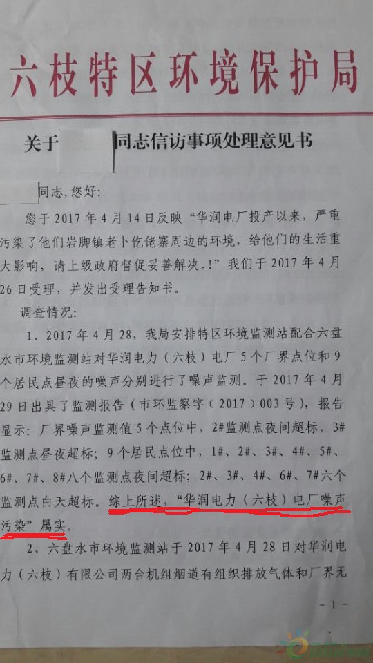 據(jù)悉,今年5月份,國家環(huán)保部第七環(huán)保督察組關于對華潤電力(六枝)電廠噪音、廢氣等污染案件發(fā)出督辦通知,在辦理該污染案件中,六枝特區(qū)成立了以政府分管領導為組長的工作專班,按照“第一時間轉辦、第一時間明確責任單位和責任人員、第一時間組織調查、第一時間制定措施、第一時間查處到位、第一時間反饋和報送情況”的要求。但時至今日,還是絲毫沒有改變污染原狀, 對外聲稱投資整改,而所謂整改就是搭建了幾塊隔音板,根本就沒有任何效果,老百姓欲哭無淚。