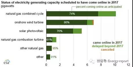根據(jù)美國能源信息署數(shù)據(jù),2018年美國將增加25.1GW電力裝機(jī)容量。這些增量中的19.7GW(78%)已按照計劃于去年并網(wǎng)。大約5.3GW的規(guī)劃裝機(jī)容量推遲到今年或之后幾年建設(shè)。少量項目被取消。