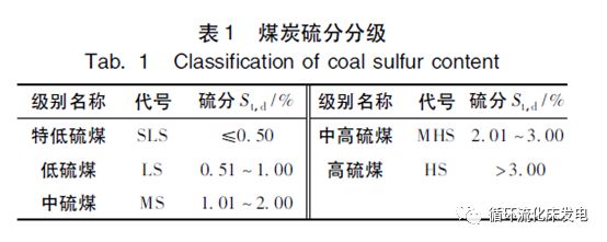 SO2超低排放技術(shù)的選擇與鍋爐燃煤含硫率即FGD系統(tǒng)入口的SO2濃度有直接關(guān)系。根據(jù)GB/T15224.2—2010《煤炭質(zhì)量分級(jí)第2部分:硫分》規(guī)定(見(jiàn)表1),煤中干燥基全硫分(質(zhì)量分?jǐn)?shù))St,d>3.00%的煤為高硫分煤,該標(biāo)準(zhǔn)適用于煤炭勘探、生產(chǎn)和加工利用中對(duì)煤炭按硫分分級(jí)。國(guó)家環(huán)??偩痔岢鲈诿禾苛魍ê褪褂妙I(lǐng)域,St,d>2.00%的煤就應(yīng)該稱為高硫煤。本研究中將電廠的煤按收到基硫分Sar分為三類:低硫煤,Sar≤1.00%;中硫煤,1.00%2.00%,以此來(lái)選擇SO2超低排放的FGD技術(shù)。由于鍋爐煙氣中SO2的實(shí)際排放濃度(文中污染物排放濃度均為質(zhì)量濃度)和折算含硫量成正比,即科學(xué)地判斷不同煤種的SO2排放濃度,不能只比較其收到基含硫量,而應(yīng)比較其折算含硫量,即要和煤的發(fā)熱量聯(lián)系起來(lái)。因此對(duì)于相同容量的鍋爐,燃用不同發(fā)熱量的煤種,即使煤的收到基含硫量相同,其SO2的實(shí)際排放濃度是不相同的。