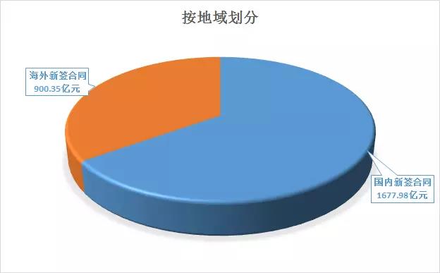 國內(nèi)新簽合同額人民幣1677.98億元,約占新簽合同總額的65.08%;海外新簽合同額人民幣900.35億元,約占新簽合同總額的34.92%。