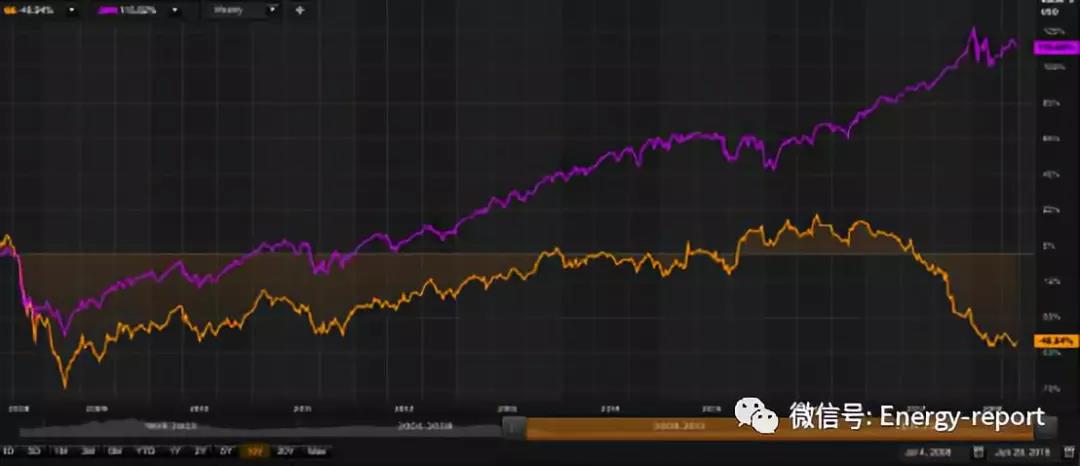 圖5 過去10年通用電氣股價表現(xiàn)(橙色) vs. 美國標(biāo)準(zhǔn)普爾500指數(shù)(紫色)