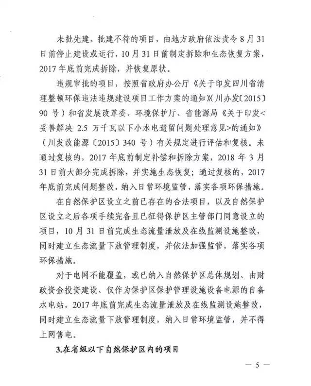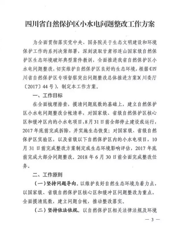 重磅丨《四川省自然保護區(qū)小水電問題整改工作方案》發(fā)布 整改任務于2018年6月30日前全面完成