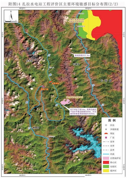 扎拉水電站工程評價區(qū)主要環(huán)境敏感目標(biāo)分布圖 生態(tài)環(huán)境部網(wǎng)站 圖