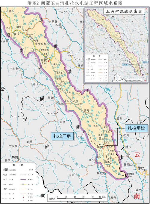 玉曲河扎拉水電站工程區(qū)域水系圖