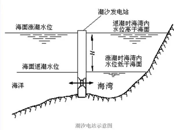 潮汐現(xiàn)象是海水因受日月引力而產生的周期性升降運動,即海水的潮漲潮落。潮汐發(fā)電就是在海灣或有潮汐的河口建一攔水堤壩,將海灣或河口與海洋隔開構成水庫,再在壩內或壩房安裝水輪發(fā)電機組,然后利用潮汐漲落時海水位的升降,使海水通過輪機轉動水輪發(fā)電機組發(fā)電。