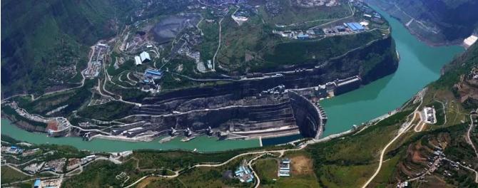 站在溪洛渡下游金沙江大橋上看溪洛渡水電站,一座氣勢恢宏的大壩橫跨金沙江,矗立在川滇大地之上,兩岸綠意盎然、一片生機(jī)。