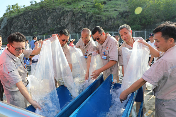 放流活動中,該公司黨政領(lǐng)導(dǎo)和員工有序把活蹦亂跳的魚苗放進(jìn)電站水庫中。秋季放流活動的成功開展,得到地方魚政部門的高度肯定,也再次見證該公司堅持綠色發(fā)展理念的真行動。
