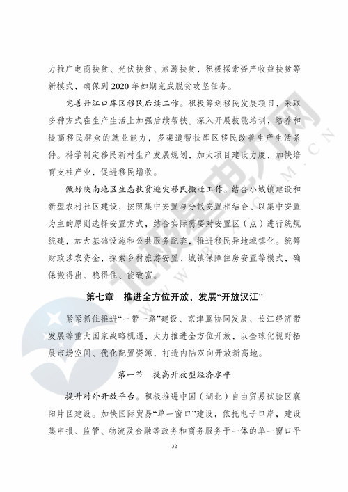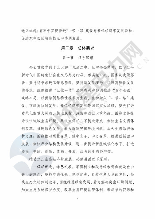 一、《規(guī)劃》實(shí)施要以習(xí)近平新時(shí)代中國(guó)特色社會(huì)主義思想為指導(dǎo),全面貫徹黨的十九大和十九屆二中、三中全會(huì)精神,落實(shí)黨中央、國(guó)務(wù)院決策部署,堅(jiān)持穩(wěn)中求進(jìn)工作總基調(diào),堅(jiān)持新發(fā)展理念,按照高質(zhì)量發(fā)展的要求,統(tǒng)籌推進(jìn)“五位一體”總體布局和協(xié)調(diào)推進(jìn)“四個(gè)全面”戰(zhàn)略布局,以供給側(cè)結(jié)構(gòu)性改革為主線,主動(dòng)融入“一帶一路”建設(shè)、京津冀協(xié)同發(fā)展、長(zhǎng)江經(jīng)濟(jì)帶發(fā)展等國(guó)家重大戰(zhàn)略,堅(jiān)決打好防范化解重大風(fēng)險(xiǎn)、精準(zhǔn)脫貧、污染防治三大攻堅(jiān)戰(zhàn)。圍繞改善提升漢江流域生態(tài)環(huán)境,共抓大保護(hù)、不搞大開(kāi)發(fā),加快生態(tài)文明體制改革,推進(jìn)綠色發(fā)展,著力解決突出環(huán)境問(wèn)題,加大生態(tài)系統(tǒng)保護(hù)力度;圍繞推動(dòng)質(zhì)量變革、效率變革、動(dòng)力變革,推進(jìn)創(chuàng)新驅(qū)動(dòng)發(fā)展,加快產(chǎn)業(yè)結(jié)構(gòu)優(yōu)化升級(jí),進(jìn)一步提升新型城鎮(zhèn)化水平,打造美麗、暢通、創(chuàng)新、幸福、開(kāi)放、活力的生態(tài)經(jīng)濟(jì)帶。