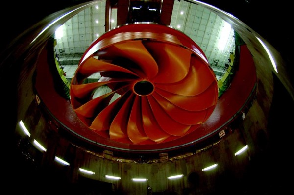 正在吊裝的三峽水輪機(jī)轉(zhuǎn)輪圖/張愛忠