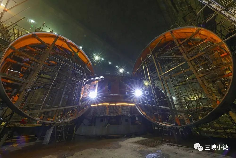 沿著四通八達的地下交通洞蜿蜒行進,到達左右岸地下電站后可以看到,自開挖向金屬結(jié)構(gòu)安裝轉(zhuǎn)序后,兩岸地下主廠房迎來了許多發(fā)電用的“大家伙”。目前,左右岸主廠房肘管全部安裝完成,錐管安裝基本完成,座環(huán)和蝸殼安裝工作陸續(xù)啟動,金屬結(jié)構(gòu)安裝環(huán)節(jié)在向機電交面的路程上已經(jīng)走過大半;此外,左右岸進水塔、引水洞、尾水洞澆筑,引水壓力鋼管安裝等工作也正同步進行。