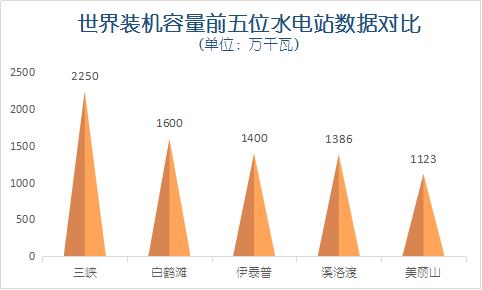 白鶴灘水電站以1600萬千瓦的總裝機容量排名世界第二,僅次于2250萬千瓦的三峽水電站。值得關注的是,在前五位排名中,三峽電站、白鶴灘電站和溪洛渡電站均屬于三峽集團所有。
