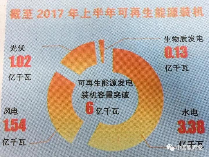 一是推動能源結(jié)構(gòu)調(diào)整的作用不斷增強。到2017年上半年,我國可再生能源發(fā)電裝機容量突破6億千瓦。其中,水電裝機3.38億千瓦,風(fēng)電并網(wǎng)裝機1.54億千瓦,光伏發(fā)電并網(wǎng)裝機1.02億千瓦,生物質(zhì)發(fā)電并網(wǎng)裝機1330萬千瓦。