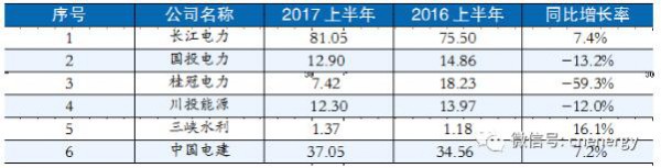 主要水電上市公司2017年上半年凈利潤(rùn)(億元)