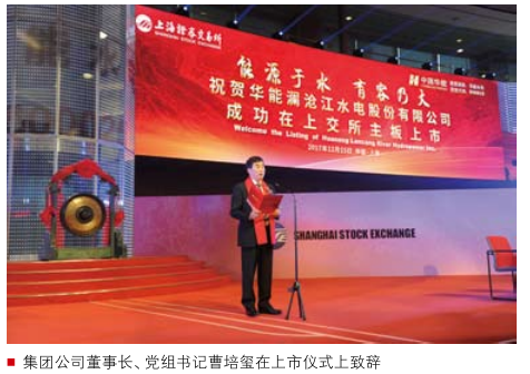 2017年12月15日,華能瀾滄江水電股份有限公司(下稱“華能水電”,代碼600025)在上海證券交易所開始掛牌交易。華能集團(tuán)公司董事長、黨組書記曹培璽,華能水電董事長袁湘華,云南省政府部門代表,云南能投、合和集團(tuán)等股東方代表出席華能水電掛牌上市儀式。