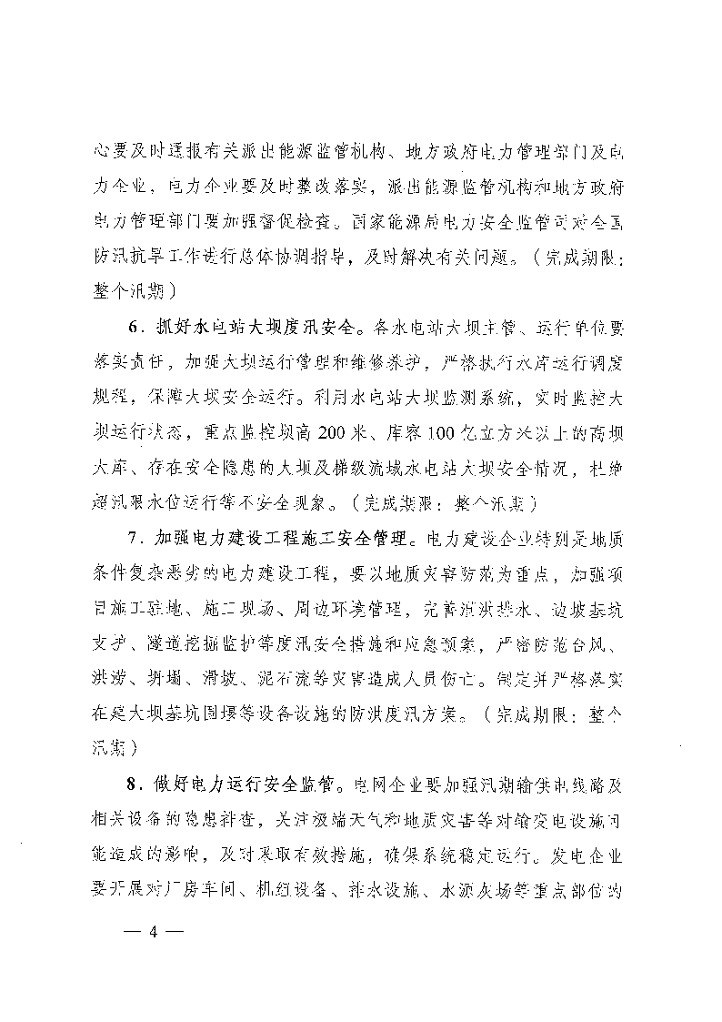 通知要求,杜絕重大以上電力人身傷亡責任事故,杜絕重大以上電力安全事故,杜絕水電站水淹廠房和垮壩漫壩事故,避免和減少洪澇災害引起的倒桿倒塔和停機停電時間。