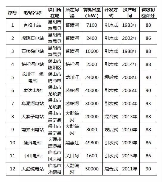云南省水利廳擬申報(bào)2018年綠色小水電站公示名單