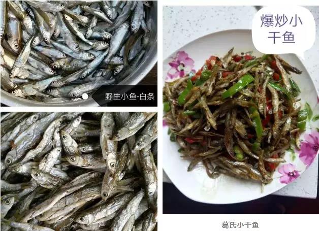 小干魚是友山自己打,自己烘的。秘方是有,一般人真弄不清楚。這葛氏干魚的做法還是比較細(xì)致的。專挑大小差不多的,清一色小白條,或小紅翅膀。不要鯽魚,刺太多太硬。剖好,洗凈,用鹽搓一下,拌上配料,腌制半天或一天,再用炭火烘干。一般都要四、五斤小魚才能曬成一斤干魚。