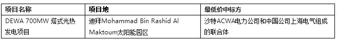 迪拜Mohammed Bin Rashid Al Maktoum太陽能園區(qū)第四階段的700MW光熱發(fā)電項(xiàng)目的中標(biāo)結(jié)果于2017年9月中旬對外公布。迪拜水電局DEWA表示,該項(xiàng)目總計(jì)投資142億迪拜迪拉姆(約合人民幣253億元),將授予沙特ACWA電力公司和中國公司上海電氣組成的聯(lián)合體。這是世界上最大的光熱發(fā)電項(xiàng)目,將基于IPP模式建設(shè)。ACWA和上海電氣聯(lián)合體在該項(xiàng)目中投出的最低價(jià)(平準(zhǔn)化電價(jià))7.3美分/kWh(約合人民幣0.48元/kWh)成功中標(biāo)。