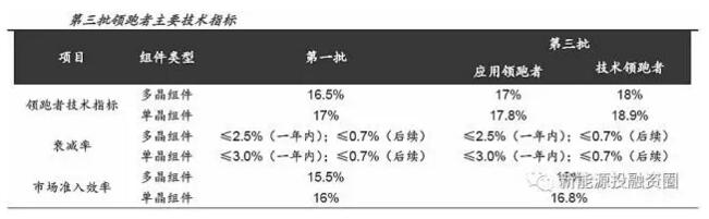 第三批領(lǐng)跑者計(jì)劃與前兩批的區(qū)別?第三批領(lǐng)跑者計(jì)劃除了之前的應(yīng)用領(lǐng)跑者基地之外,還首次提出了技術(shù)領(lǐng)跑者基地,每期的規(guī)劃規(guī)模為1.5GW,對(duì)應(yīng)3個(gè)領(lǐng)跑者基地和6個(gè)項(xiàng)目。應(yīng)用領(lǐng)跑者基地的目的是加速已量產(chǎn)的高效產(chǎn)品的市場(chǎng)推廣,而技術(shù)領(lǐng)跑基地通過給光伏制造企業(yè)自主創(chuàng)新研發(fā)、可推廣應(yīng)用但尚未批量制造的前沿技術(shù)和突破性技術(shù)產(chǎn)品提供試驗(yàn)示范和依托工程,以加速科技研發(fā)成果應(yīng)用轉(zhuǎn)化,帶動(dòng)和引領(lǐng)光伏發(fā)電技術(shù)進(jìn)步和市場(chǎng)應(yīng)用。在投資企業(yè)的選擇上,技術(shù)領(lǐng)跑者主要考察企業(yè)的技術(shù)和產(chǎn)業(yè)先進(jìn)性(55%)、技術(shù)方案(25%)、業(yè)績(jī)水平(10%)和投資能力(10%),并不考察上網(wǎng)電價(jià),技術(shù)領(lǐng)跑者基地的上網(wǎng)電價(jià)執(zhí)行所在地的光伏標(biāo)桿上網(wǎng)電價(jià);而應(yīng)用領(lǐng)跑者主要考察企業(yè)的上網(wǎng)電價(jià)(35%)、技術(shù)與產(chǎn)業(yè)先進(jìn)性(20%)、業(yè)績(jī)水平(20%)、技術(shù)方案(15%)和投資能力(10%)。在技術(shù)指標(biāo)的設(shè)置上,領(lǐng)跑者基地技術(shù)指標(biāo)不定期更新,應(yīng)用領(lǐng)跑者技術(shù)指標(biāo)將作為市場(chǎng)準(zhǔn)入標(biāo)準(zhǔn)參考,而技術(shù)領(lǐng)跑者的技術(shù)指標(biāo)作為下期應(yīng)用領(lǐng)跑者基地的技術(shù)指標(biāo)參考。兩級(jí)領(lǐng)跑者的配置很好地踐行了“研發(fā)一代、量產(chǎn)一代、推廣一代”的新技術(shù)研發(fā)和推廣方式,在兩級(jí)領(lǐng)跑者配置的帶動(dòng)下,行業(yè)格局將發(fā)生變化,高效化進(jìn)程將進(jìn)一步加速,技術(shù)實(shí)力雄厚的龍頭企業(yè)將受益,強(qiáng)者恒強(qiáng)。