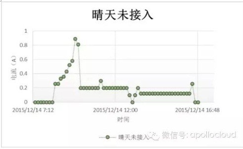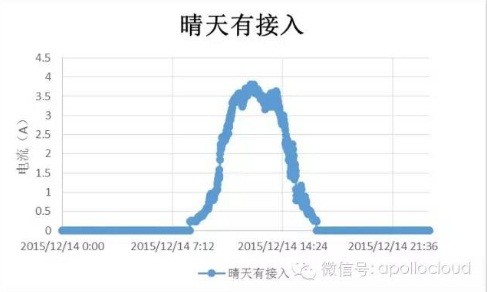 操千曲而后曉聲,觀千劍而后識器。看過大量的電流圖像之后,我們發(fā)現(xiàn),所有的接入的支路的電流形態(tài)是一個拋物線,在晴天的時候,連續(xù)而飽滿。這是由于太陽在一天的時間內(nèi),日出,正午,日落,是一個自然而連續(xù)的過程,作用在面板上之后,產(chǎn)生的電流同樣是自然而連續(xù)的。如下圖可以看到。