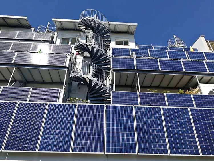 二樓的光伏板。光伏與陽臺護欄整合在一起。