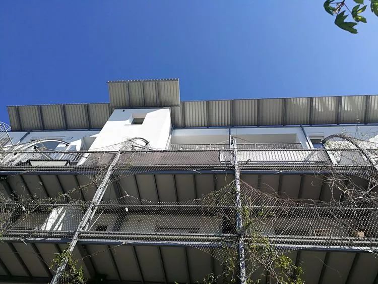 連體的另一幢幾乎同樣的南立面,用的是單晶硅光伏組件,設(shè)計了傾角。