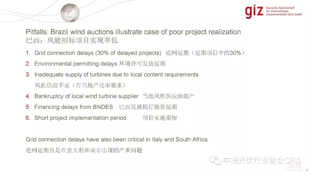2019年1月17日,由中國光伏行業(yè)協(xié)會主辦的“光伏行業(yè)2018年發(fā)展回顧與2019年形勢展望研討會”上,GIZ(德國國際合作機構(gòu))中德能源轉(zhuǎn)型研究項目主任侯安德為大家介紹國際光伏招標經(jīng)驗分享及趨勢展望。侯安德指出,從2015年開始招標逐漸替代補貼電價,目前全世界大概有80多個國家已經(jīng)從補貼電價轉(zhuǎn)向招標。 侯安德還分別介紹了德國、巴西、印度、日本、美國等不同國家的招標方式。在成功的招標國家中通常有四個特點,一是已經(jīng)有了成型的現(xiàn)貨市場、二是有配套輔助的服務市場、三是都可以實現(xiàn)地區(qū)交易、四是能夠接受電價波動信號的機制。