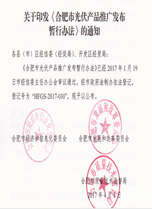 關于印發(fā)《合肥市光伏產(chǎn)品推廣發(fā)布暫行辦法》的通知