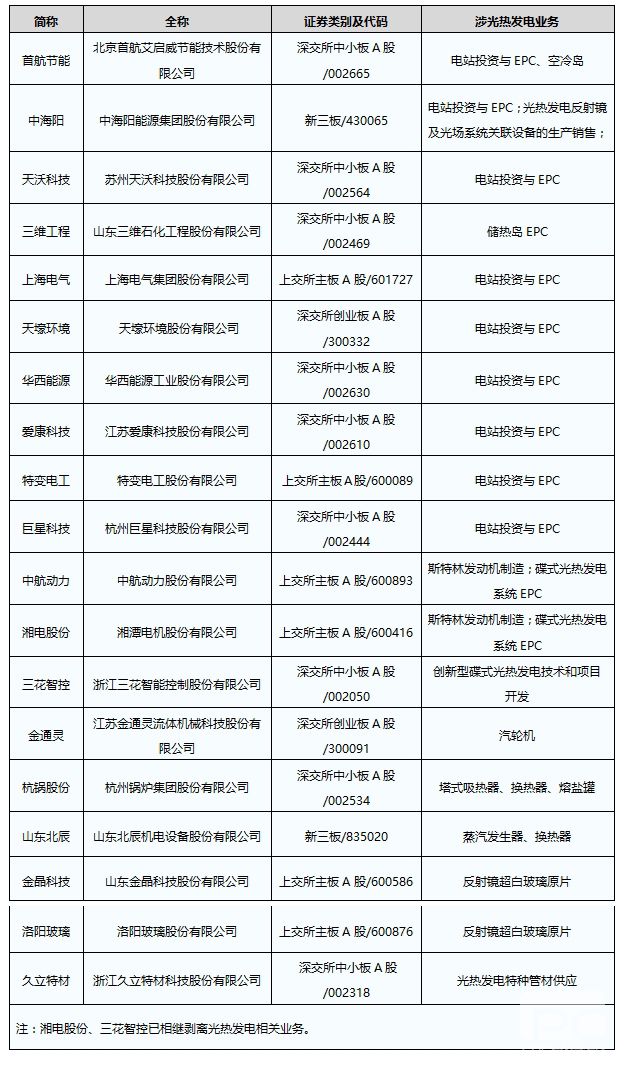 中國(guó)涉及光熱發(fā)電業(yè)務(wù)的上市公司一覽