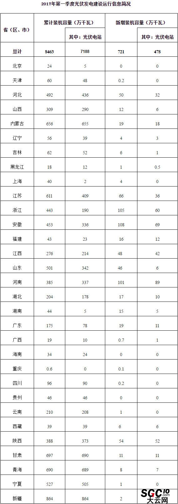 2017年第一季度光伏發(fā)電建設(shè)和運(yùn)行信息簡況