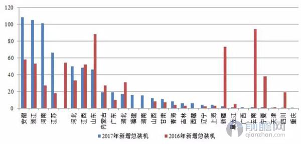 以下為2016年、2017年一季度各省市光伏新增總裝機(jī)量對(duì)比: