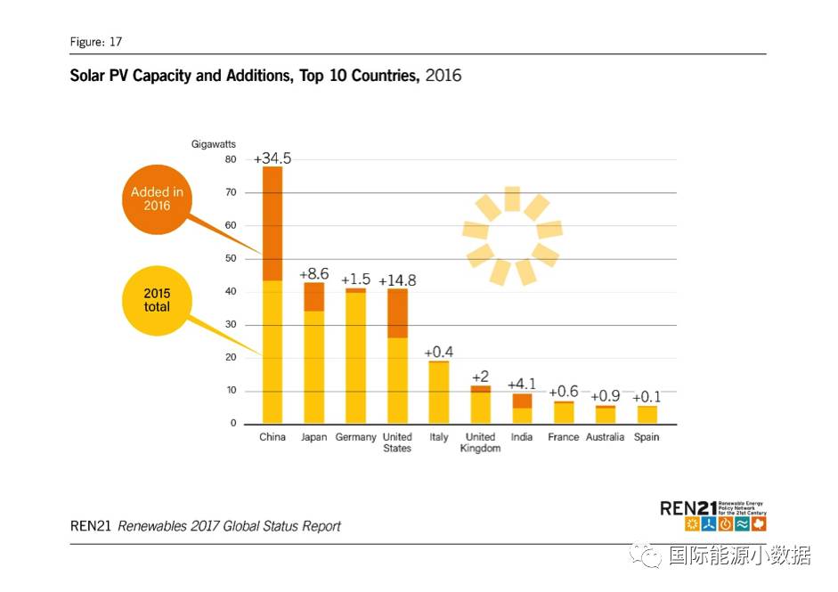 根據RE21最新發(fā)布的全球可再生能源現狀報告,在2016年的26項指標里中國有13項獨占鰲頭。如下圖所示,中國在以下指標中奪得世界第一:——2016年可再生能源總投資(不計水電)——2016年水電新增裝機容量——2016年