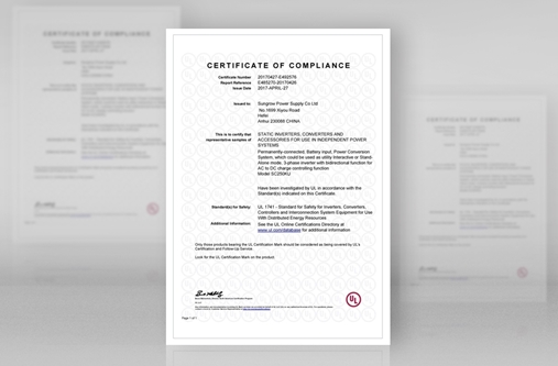 陽(yáng)光電源儲(chǔ)能逆變器順利通過(guò)美國(guó)UL認(rèn)證