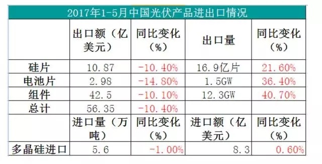 2、光伏產品出口額同比下降,出口量卻同比增加;