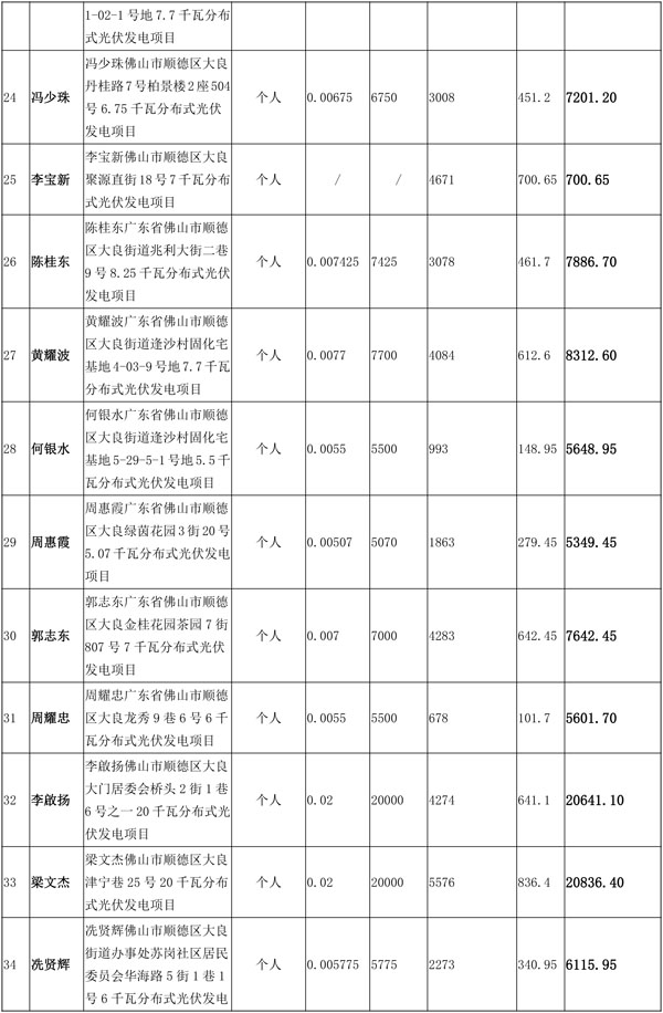 佛山市順德區(qū)光伏發(fā)電應(yīng)用項目獎勵和補助資金匯總表(2016年度)