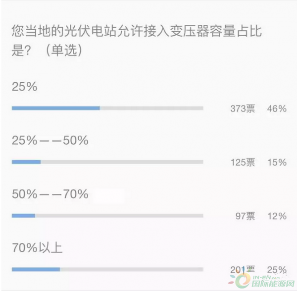之前,光伏盒子曾經(jīng)做過相關(guān)的調(diào)研,調(diào)研結(jié)果顯示,大約一半的人(46%)在進(jìn)行戶用光伏系統(tǒng)并網(wǎng)時(shí),被要求光伏項(xiàng)目容量不能超過接入變壓器容量的25%。