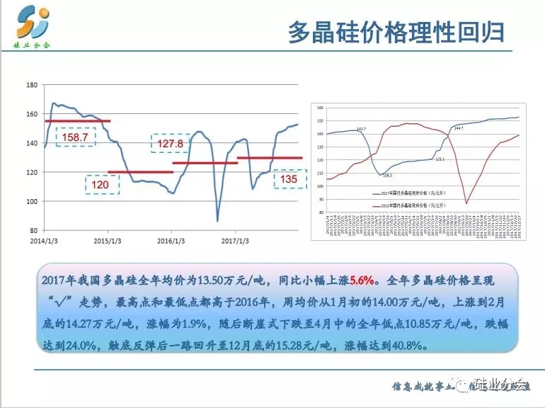 供應方面:2018年國內(nèi)多晶硅產(chǎn)能擴張將達到新的高點,新增產(chǎn)能約12-13萬噸 年,達到40萬噸 年,同比大幅增長45%。另有武漢東立、中電電氣等