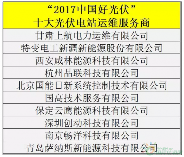 以下為榮膺2017中國(guó)好光伏品牌榜的光伏運(yùn)維企業(yè)。(以下企業(yè)排名不分先后)