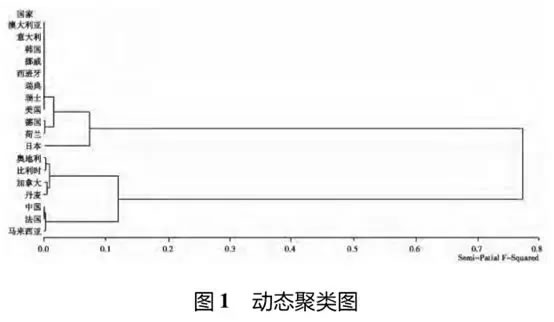 (3)聚類分析將樣本國家分為三類,第一類:澳大利亞、美國、德國和日本等11個國家,光伏產(chǎn)業(yè)政策效率處于相對較高的水平;第二類為中國、法國和馬來西亞,光伏產(chǎn)業(yè)政策效率處于相對中等的水平;第三類為奧地利、比利時、加拿大和丹麥,光伏產(chǎn)業(yè)政策效率處于相對較低的水平。